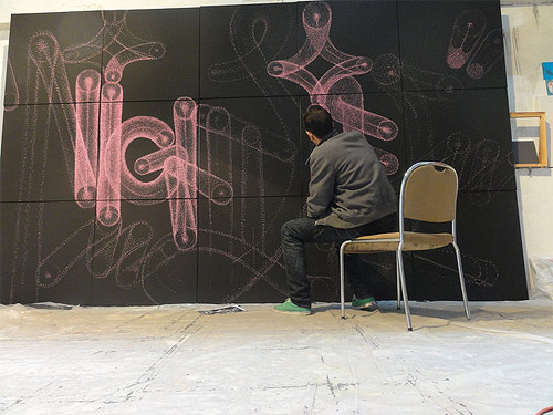 BENJAMIN LAADING es un artista noruego que creció en África y que ahora reside en París. Desde pequeño se sintió fascinado por la calidad estética de las letras que, al margen de poder expresar conceptos, sentimientos, etc. también tienen un valor gráfico como elementos compuestos de líneas y puntos. Según él mismo explica en una entrevista realizada por CITRUS REPORT, su dislexia, descubierta a una temprana edad, también contribuyó a esa apreciación de las letras como imágenes abstractas.